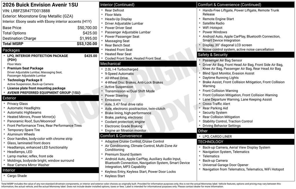 Moonstone Gray Metallic 2026 Buick Envision Avenir AWD 9-Speed Automatic 2.0L Turbocharged Multi Point Service Inspection.