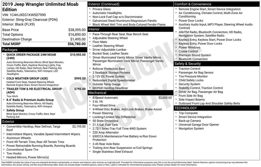 We understand that finding the right vehicle can be a daunting task, but our team of knowledgeable sales professionals is here to guide you through the process. We invite you to schedule a test drive and experience the exceptional capabilities of this 2019 Jeep Wrangler Unlimited Moab for yourself. Let us demonstrate how this remarkable vehicle can enhance your driving experience and elevate your outdoor adventures.