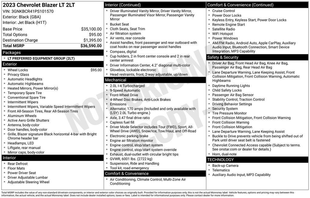 We invite you to visit our showroom and take this exceptional Blazer LT for a test drive. Our knowledgeable sales team is ready to answer any questions you may have and help you discover why this SUV is the perfect fit for your lifestyle. Don't miss out on the opportunity to own this exceptional 2023 Chevrolet Blazer LT.