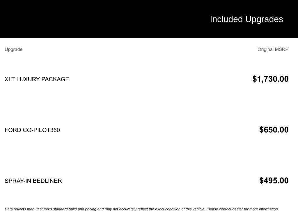 - XLT Luxury Package with heated steering wheel, 400W inverter, and more